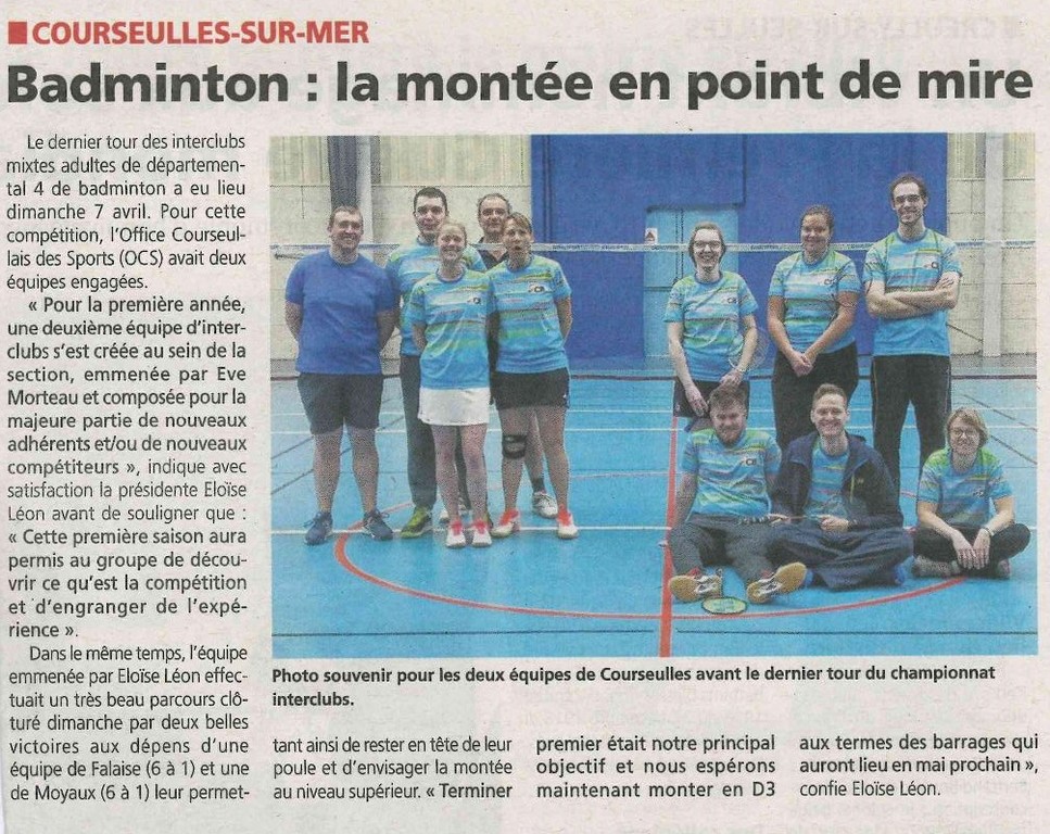 ARTICLE de PRESSE du 16 avril 2019 - section BADMINTON