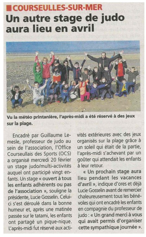 20 enfants ont participé au stage JUDO / MULTI ACTIVITES de l'Office Courseullais des Sports encadré par Guillaume LEMESLE, Educateur Sportif.