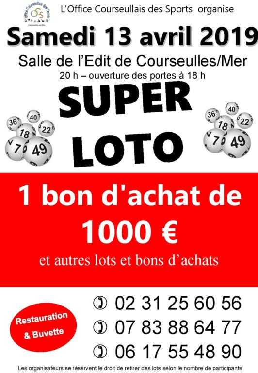 L'OFFICE COURSEULLAIS des SPORTS organise un SUPER LOTO, le samedi 13 avril 2019 à 20h