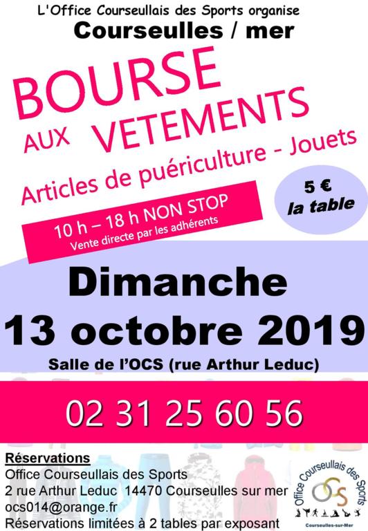 L'Office Courseullais des Sports organise une bourse aux vêtements, le dimanche 13 octobre 2019 entre 10h et 18h au siège de l'association (2, rue Arthur Leduc à Courseulles-sur-Mer)