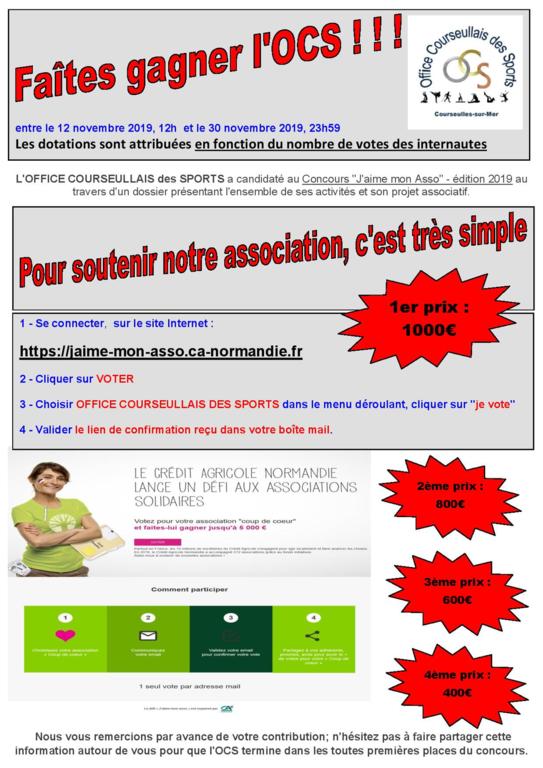 L'OFFICE COURSEULLAIS des SPORTS a candidaté au Concours "J'aime mon Asso" - édition 2019 au travers d'un dossier présentant l'ensemble de ses activités et son projet associatif.