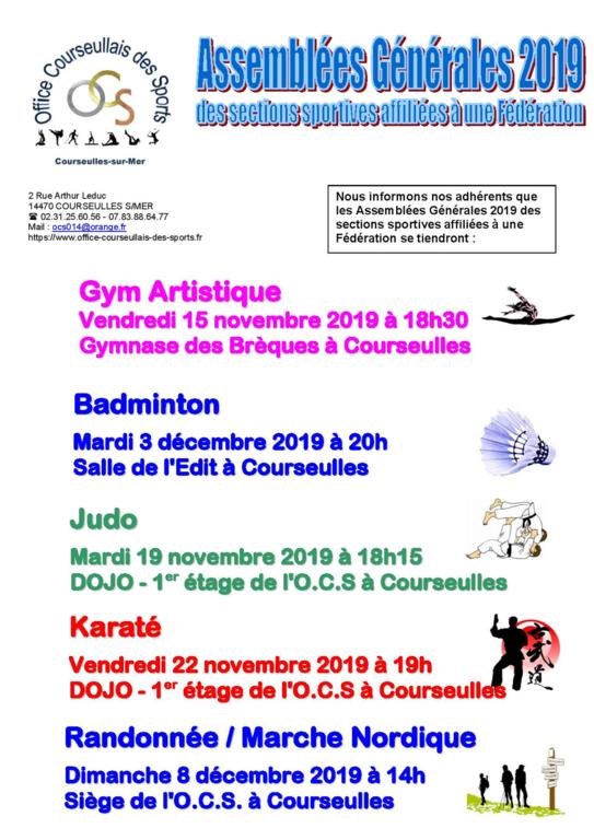 ASSEMBLEES GENERALES 2019 (saison 2018-2019) des sections affiliées à des Fédérations